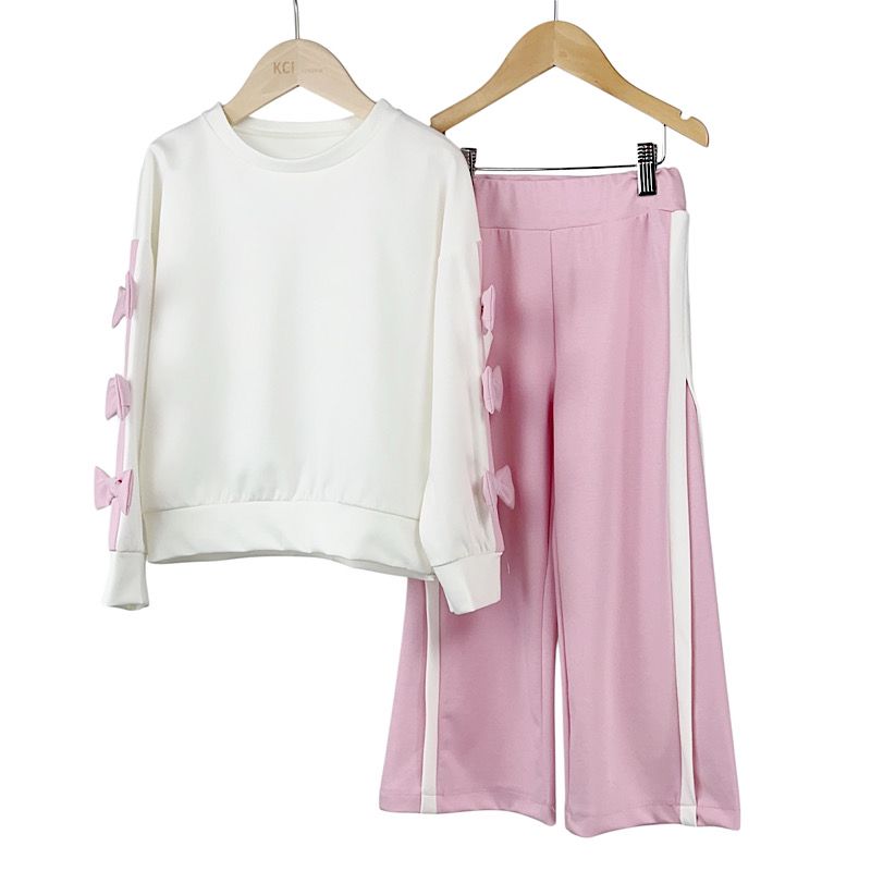 Elevate your child's lounge wear collection with our Baby Pink Contrast Bow Lounge Set. Crafted with soft and comfortable fabric, this set features a chic baby pink and white contrast design with delicate bow sleeve detailing. The wide-leg lounge pants provide a relaxed fit for ultimate comfort. Available in sizes 2-12 years.