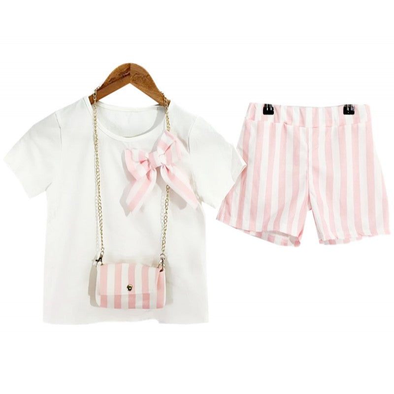 This Girl's Pink Short Set With Bag offers a stylish option for girls aged 2-12 years. The set includes a comfortable and trendy pink shorts and a matching bag, perfect for any casual outing. Made with high-quality materials, this set provides both style and practicality for your little one.