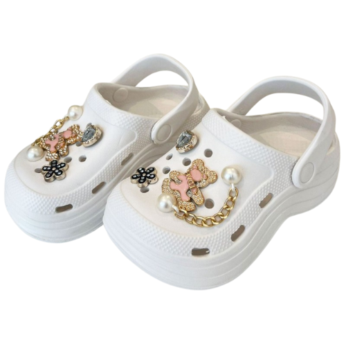 Introducing our Clog Style Summer Sandals with Detachable Charms! These sandals are perfect for the hot summer weather, providing both comfort and style. With a detachable charm features, you can customize your sandals to match any outfit. Say goodbye to boring footwear and hello to endless possibilities. Upgrade your summer wardrobe with our trendy sandals. for your little charmers.